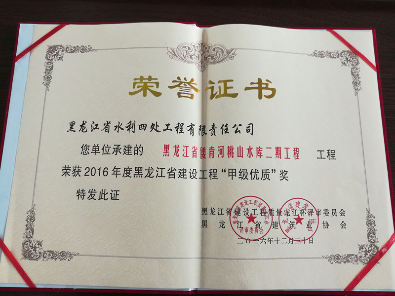桃山水庫二期工程榮獲全省甲級(jí)優(yōu)質(zhì)工程